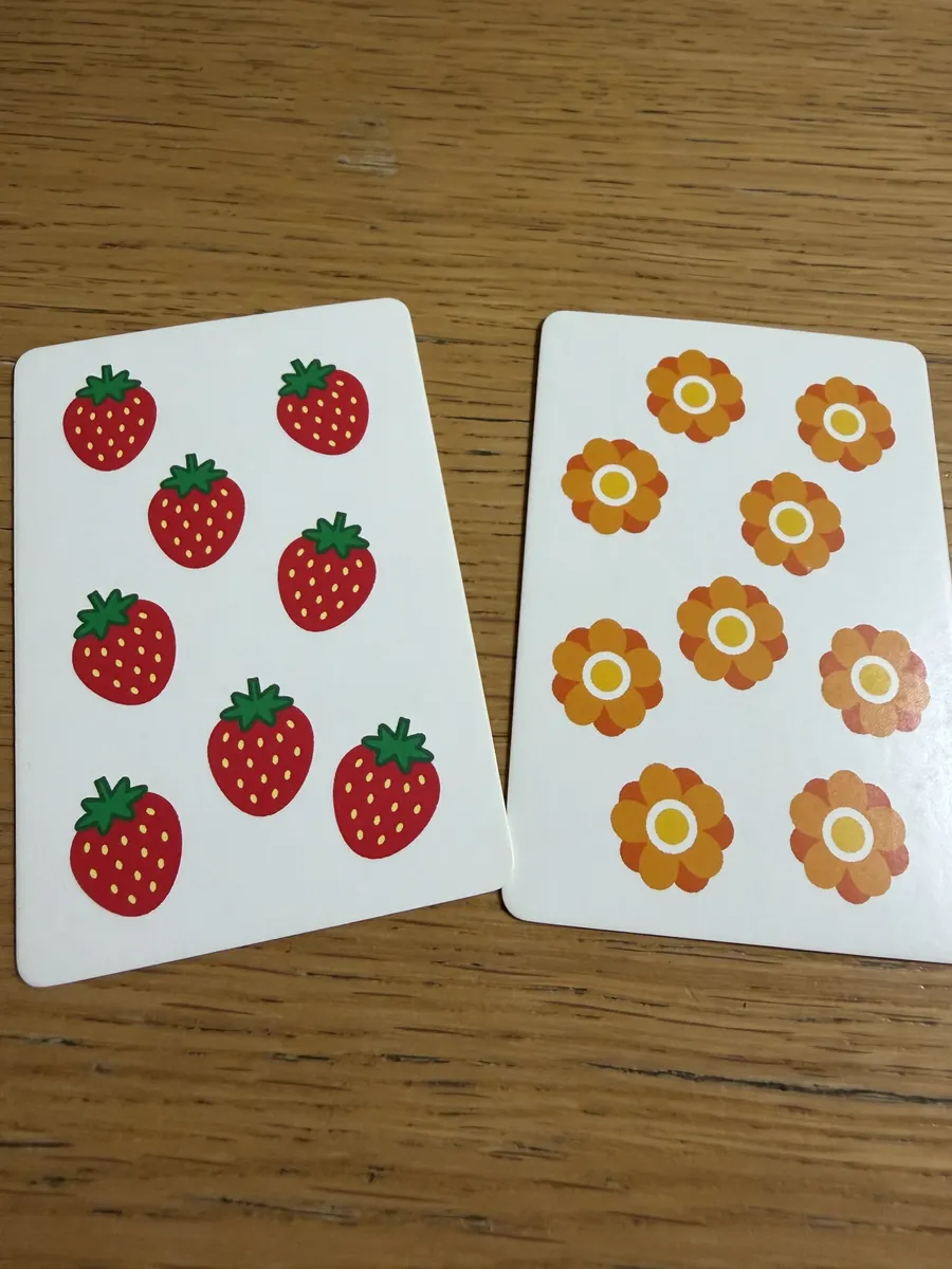 パッケージを見てわかるとおりかずカードは数字面とイラスト面(書かれた数字と同数のイラスト)があって、紹介しているのは数字面を使った場合のやり方ですが、もちろんイラスト面でやることもできます。