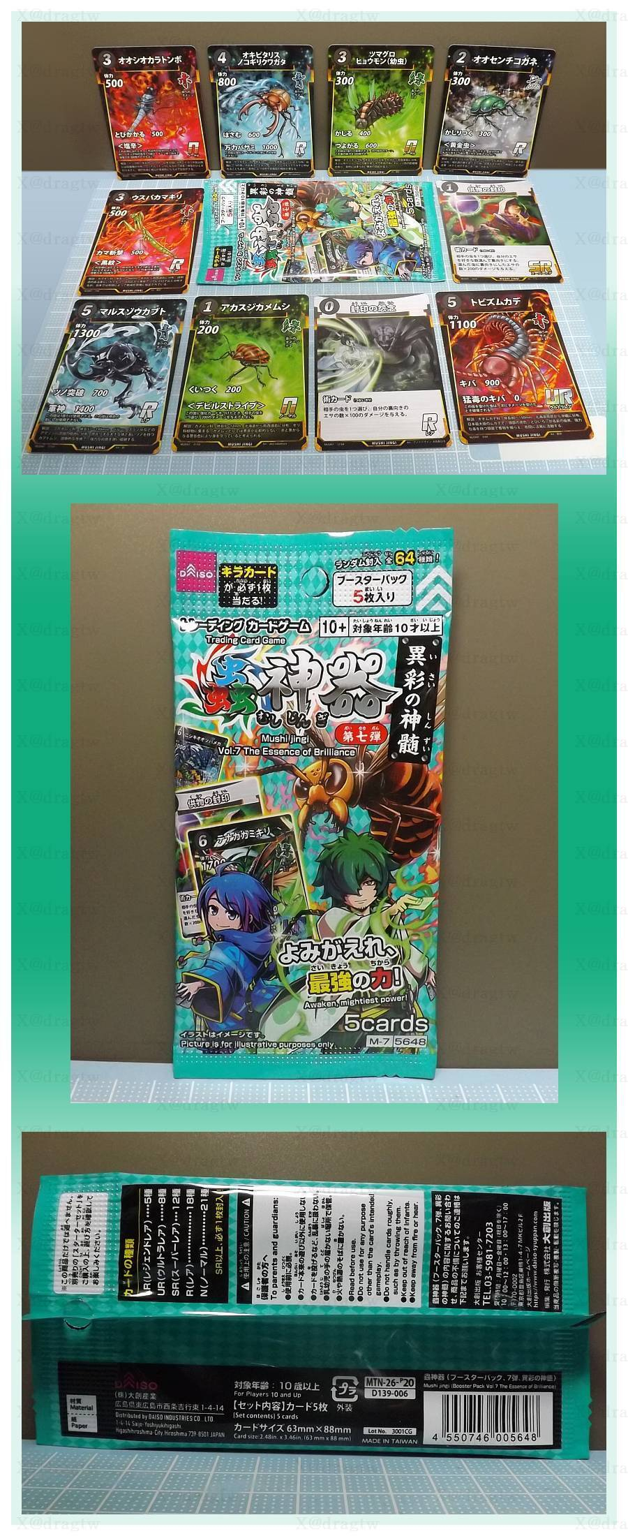 トップ > DAISO > その他 > TCG「蟲神器」新ブースターパック(第七弾)! どらごん 2026/03/01 09:42 TCG「蟲神器」新ブースターパック(第七弾)! 「蟲神器」の新ブースターパック!もう七弾なのですね~ 今弾からは、高レアリティのカテゴリに「UR(ウルトラレア)」が追加された模様?ポジション的には従来の「LR(レジェンドレア)」と「SR(スーパーレア)」の間のようですが、私は素人なのでSR以上の違いはよくわかりません(笑) パッケージの色はエメラルドグリーンで、水色の第五弾と間違えやすいかもしれません…? レビュー 蟲神器 TCG ゲーム いいね 共有する 共有する X facebook LINE リンクをコピー コメントする 1 件の返信 (新着順) ミュートしたユーザーの投稿です。 投稿を表示 なし STAFF 2026/03/01 20:30 蟲神器を購入したことがないので分からないのですが、レジェンドレアカードは1BOX(20パック)に1枚は必ず入っているカードなんでしょうか? それとも1BOX購入しても入っていないBOXもあるようなレアリティのカードなのでしょうか? 発注数の参考になるので個人的に気になりました いいね 返信する ミュートしたユーザーの投稿です。 投稿を表示 どらごん 2026/03/01 21:59 なし 私もガチ勢ではないのでそのあたりの封入率には明るくありませんが、LRだとたぶん1Boxに1~2枚とか、そんな感じなんじゃないかと思います 助けて詳しい人!w いいね 返信する ミュートしたユーザーの投稿です。 投稿を表示 なし STAFF 2026/03/01 23:50 どらごん それくらいの封入率かなとは個人的に思ってます。 コンプしたい人なら、ばらで購入するよりBOXの方を購入するかなと思うとBOXの方を多めに注文しようかなとも思いまして😅 いいね 返信する