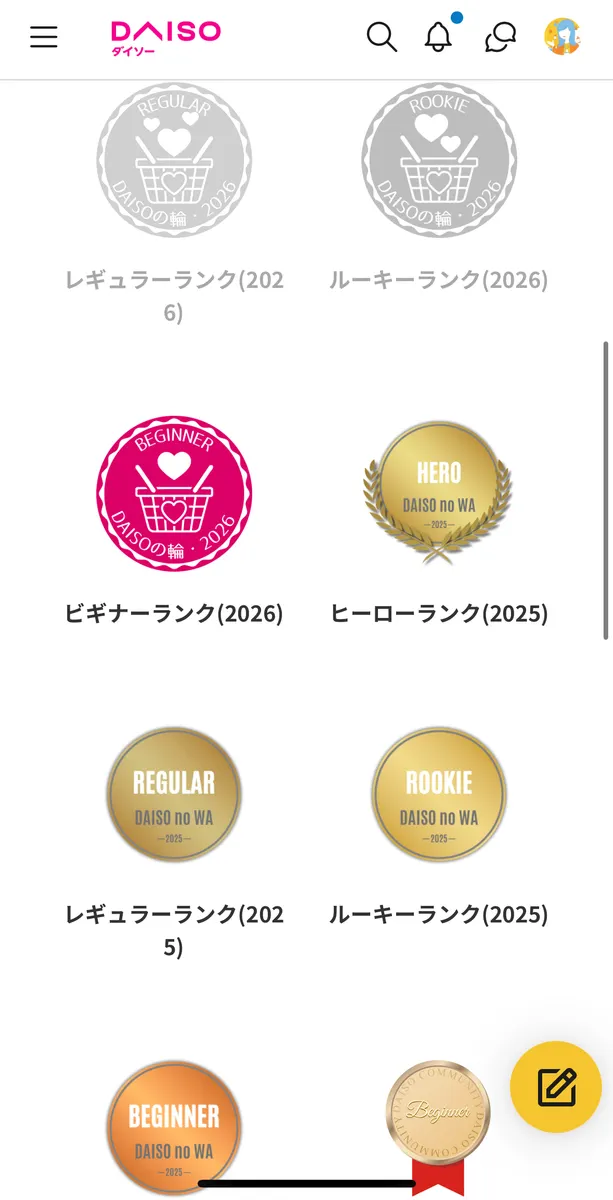 - マイページから過去に獲得したバッジが一覧で見られるようになりました。まだ獲得していないバッジがグレー表示になっています。