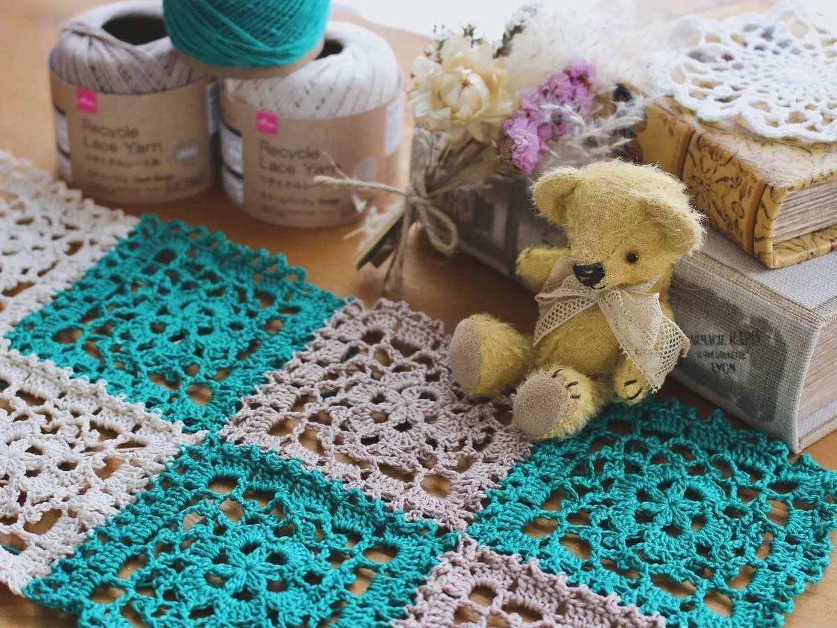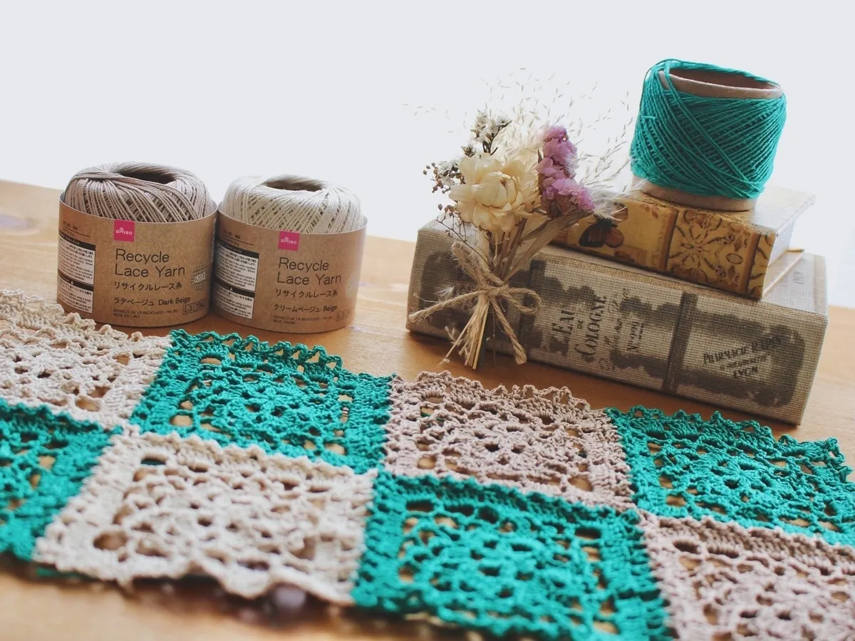 3色のリサイクルレース糸を使って