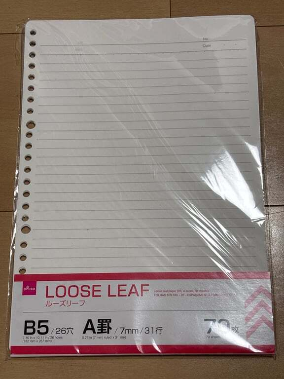 授業でルーズリーフを使う機会が増えて愛用しています。70枚入りで110円なので結構大容量になっています。