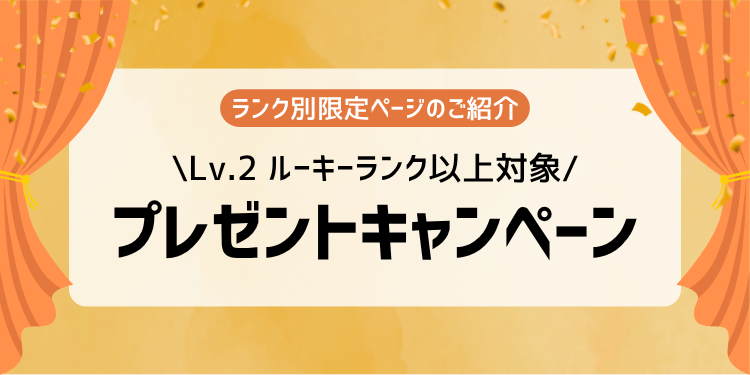 ランクがLv.2以上になると、限定の「シークレットページ」が見られるようになります!そこでは、選ばれしメンバーだけが参加できる「ランクアップキャンペーン」を毎月開催中🎁