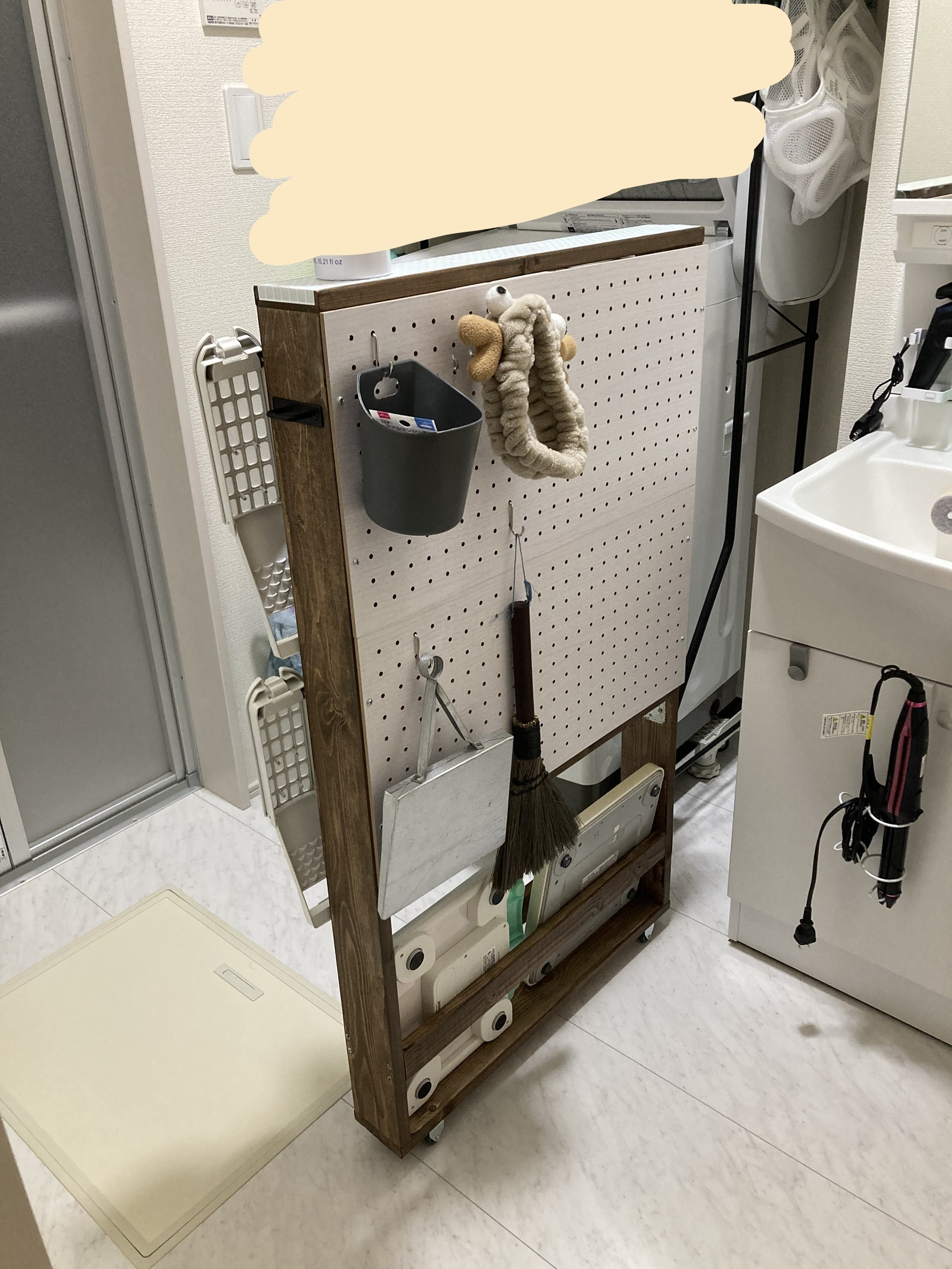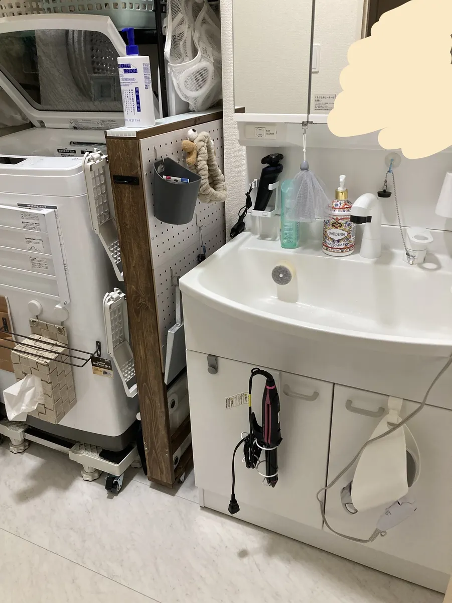 そのうちAmazonからヘアアイロン用とドライヤー用の有孔ボード用フックが届くので、それを設置して完成になります✨