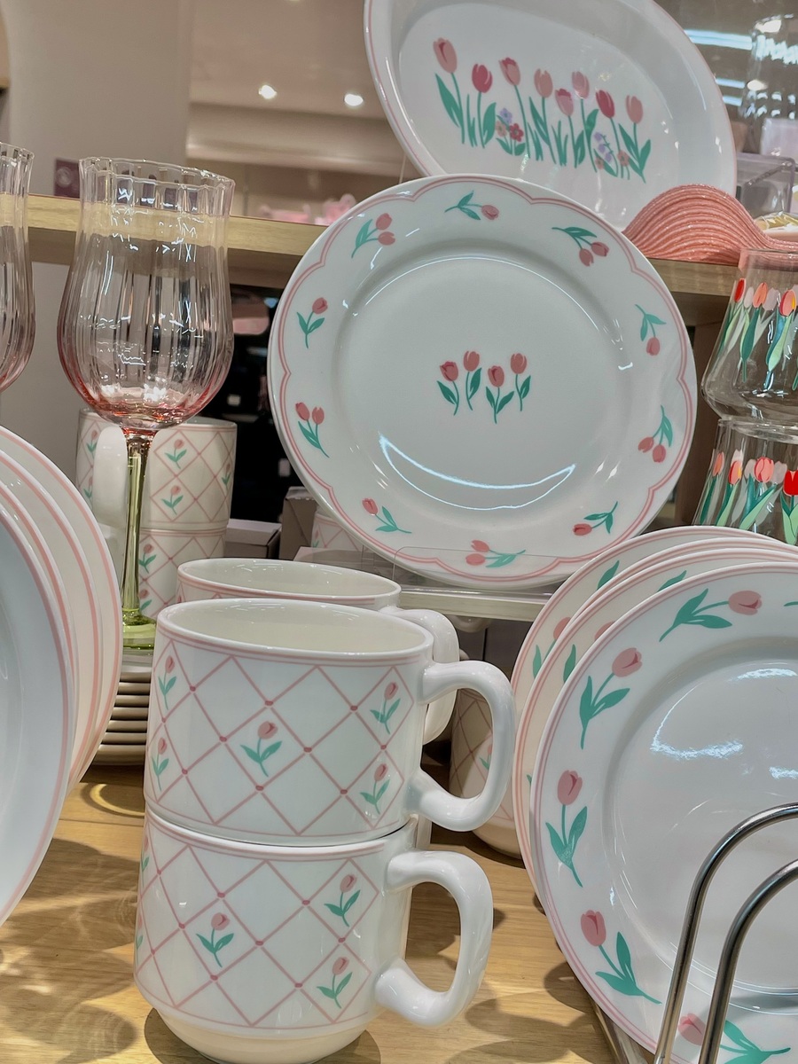 食卓を華やかに彩るアイテムが勢揃い!🌸 おしゃれなデザインのプレート、マグカップ、そして可愛らしい装飾が施されたガラスアイテムが魅力的です✨ 特別な日も日常も、テーブルコーディネートが楽しくなること間違いなし!🎀