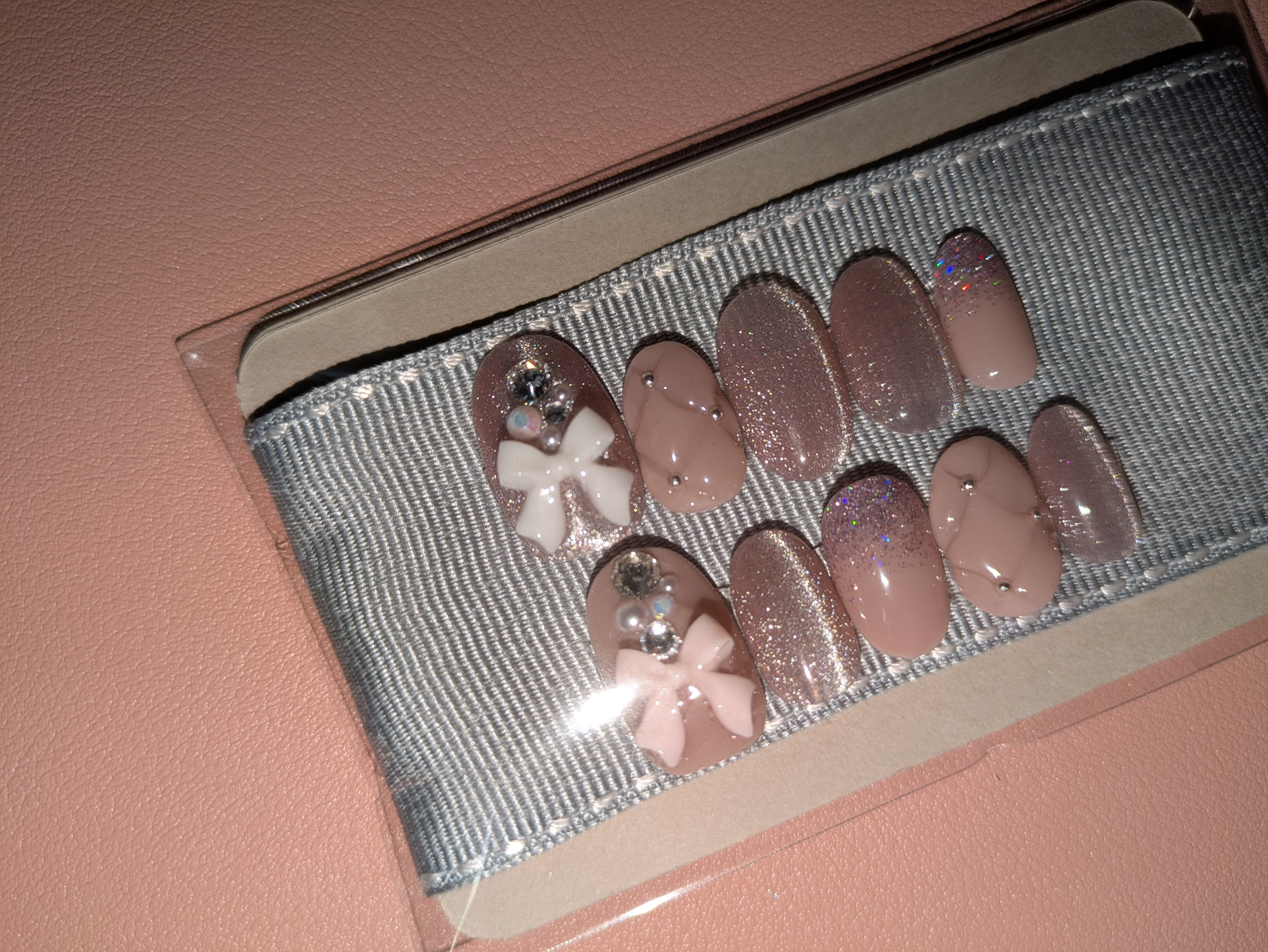 ピンクベージュとマグネットネイルのネイルチップ