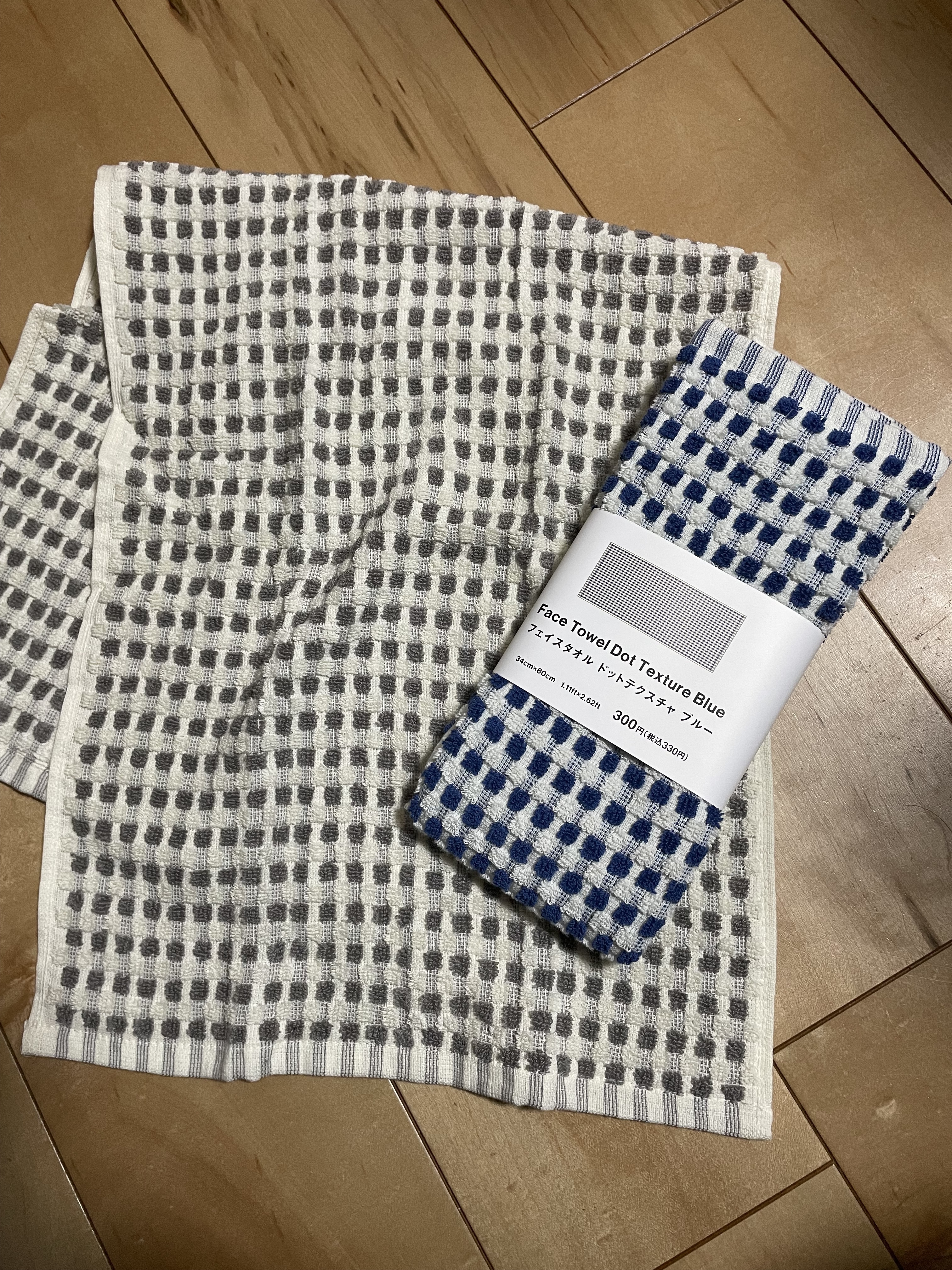 織り模様でポコポコした表面で、今までのタオルとは少し違う生地。厚すぎず薄すぎず洗濯しても一晩でほぼ乾きました!
