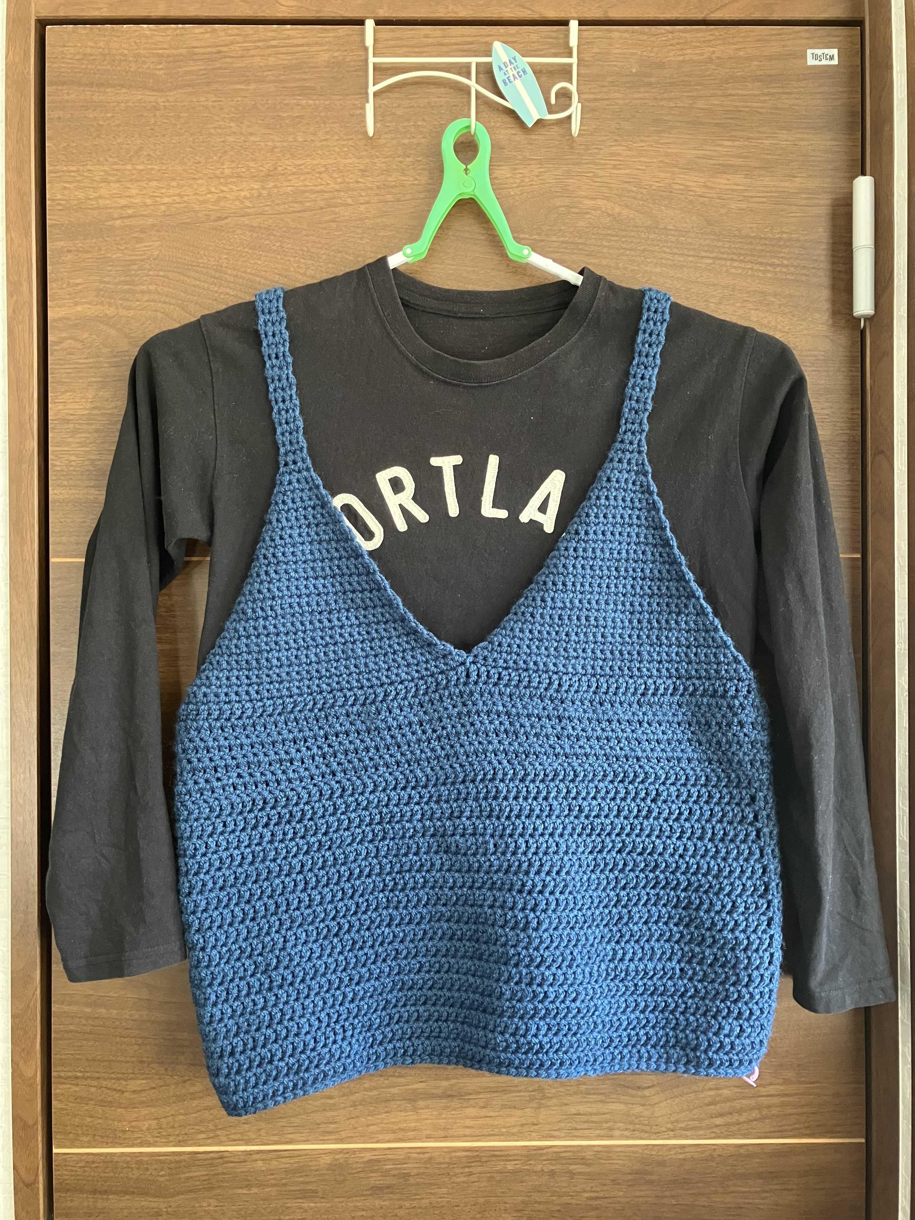 着るつもりで編んだからぴちぴちで着れない。