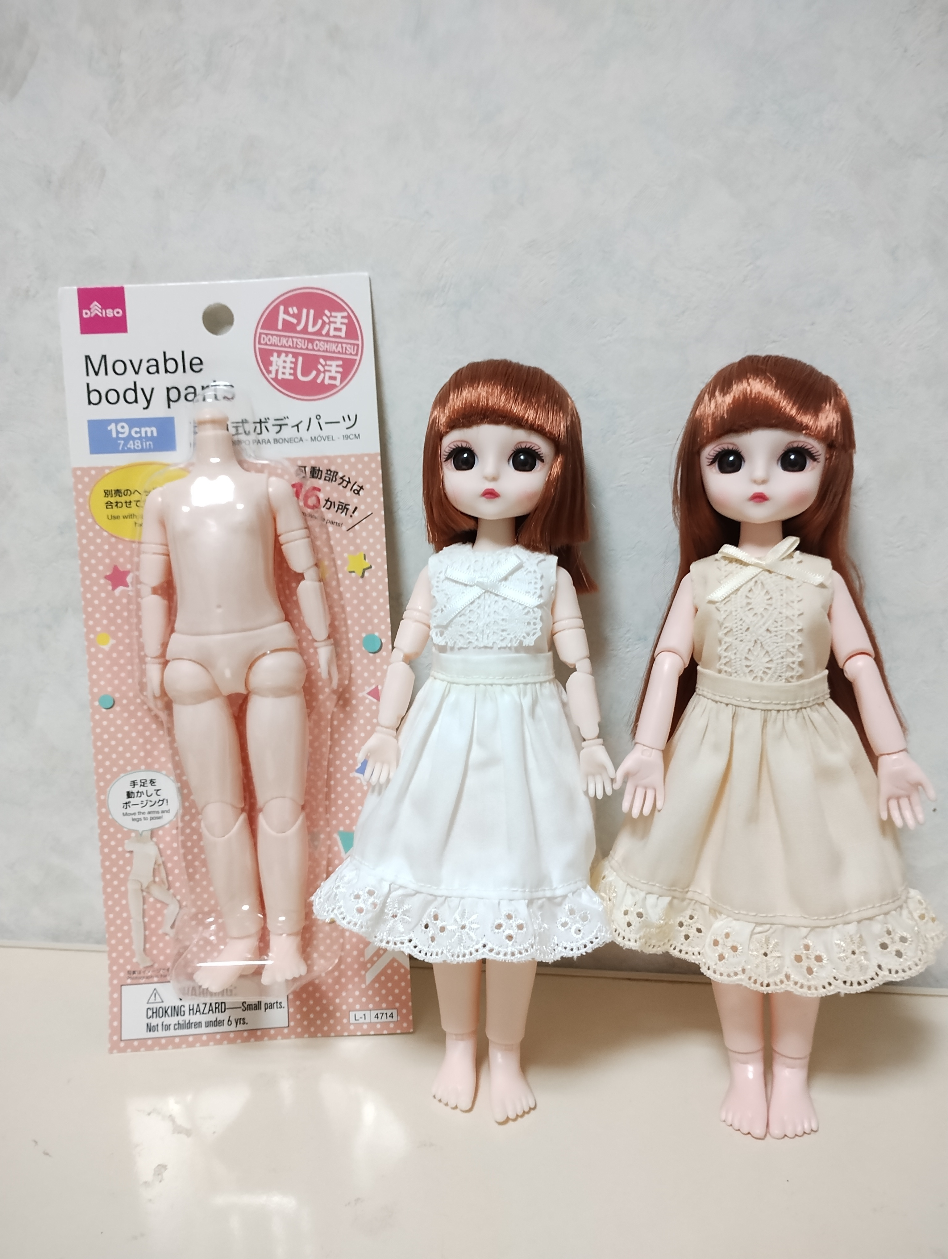 トップ > DAISO > その他 > 19cmボディ発売 はらぺこ 2026/03/05 07:25 19cmボディ発売 19cmボディに、ゆきちゃんヘッドを、はめてみました。めちゃめちゃ可愛い。クオリティの高いドールに変身しました。画像左がDAISOのボディで、右はS社のです(比較のため) 手がS社より、やや小さいですね。足が平らで自立するところは良いのですが、足のサイズが大きいため、履く物がありません。このサイズの靴や草履、発売されたら嬉しいです。 服も手縫いで作りました。DAISOのリボンとトーションレースとフリルテープを使用しました。 おもちゃ ダイソードール ドールカスタム 着せ替えゆきちゃん ドル活 ハンドメイド カスタム ゆきちゃん いいね 共有する 共有する X facebook LINE リンクをコピー コメントする 2 件の返信 (新着順) ミュートしたユーザーの投稿です。 投稿を表示 すずの 2026/03/05 15:34 ボディ変えるだけでゆきちゃんかなり美人なお姉さん感出ますね……!? 某リアさんのボディよりスマートなボディ探してたので探してみます👀 いいね 返信する ミュートしたユーザーの投稿です。 投稿を表示 はらぺこ 2026/03/05 15:41 すずの すずのさん、ありがとうございます。ダイソーの19cmボディは、某リアさんとサイズ的には同じくらいです。どちらも19cmなので。 いいね 返信する ミュートしたユーザーの投稿です。 投稿を表示 焼き餃子 2026/03/05 13:02 ハンドメイドの服かわいいですね。 いいね 返信する ミュートしたユーザーの投稿です。 投稿を表示 はらぺこ 2026/03/05 14:37 焼き餃子 焼き餃子さん、ありがとうございます♪ノースリーブブラウスと、ギャザースカートです。ゆきちゃんをお迎えしてから、初めて洋服を作ったので、コメントとても嬉しいです。ぶきっちょですが、ドール本見ながら作りました。ゆきちゃん愛ですね(ドール服は初めてですが、ドールの着物は昔から縫ってます) いいね 返信する ミュートしたユーザーの投稿です。 投稿を表示 焼き餃子 2026/03/05 15:20 はらぺこ わたしもお気に入りのドールがいて、 以前ぬったりしてました。 パーツがちいさくて縫うのが大変です。 メルちゃんの服は、割と縫いやすいです。 いいね 返信する ミュートしたユーザーの投稿です。 投稿を表示 はらぺこ 2026/03/05 15:30 焼き餃子 焼き餃子さんと、ドールのお話、嬉しいです。ドール服は、20着くらい縫い、成功は10着、失敗も10着(笑)。愛は創造力を掻き立てますね。 いいね 返信する ミュートしたユーザーの投稿です。 投稿を表示 焼き餃子 2026/03/05 15:52 はらぺこ 失敗してへこむけど うまく縫えた時の嬉しさを知ってるからついぬってしまいます。 最近は縫うより編む方が多いです♪ いいね 返信する ミュートしたユーザーの投稿です。 投稿を表示 はらぺこ 2026/03/05 16:11 焼き餃子 分かります!できた時の喜び〜♪ 編み物できるなんてスゴいです。ドールにマフラーやバッグ!作りたいですね。 いいね 返信する ミュートしたユーザーの投稿です。 投稿を表示 焼き餃子 2026/03/05 16:41 はらぺこ あみぐるみが編みたくて頑張ってかぎ針編みを特訓しました。 いまも日々特訓中です^_^ いいね 返信する