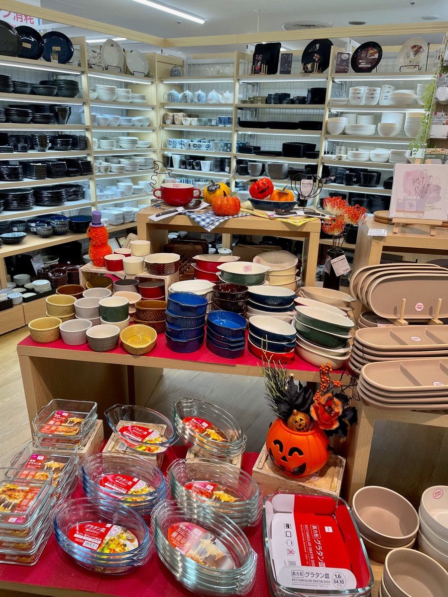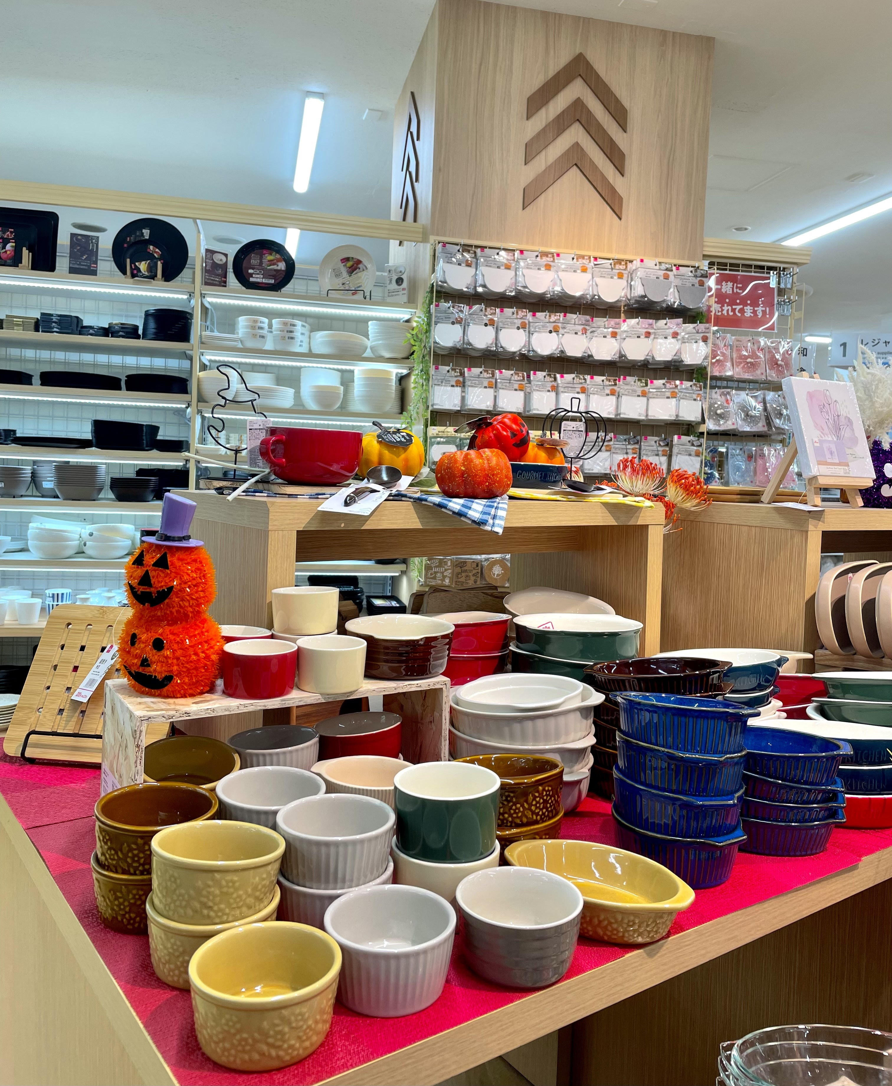 Enhance your kitchen with Daiso’s versatile and stylish ceramic bowls and ramekins. These products come in an array of vibrant colors, including mustard yellow, white, green, brown, red, and blue, making them a perfect addition to any kitchen decor. Whether you’re serving soups, salads, desserts, or side dishes, these bowls and ramekins are designed for both function and aesthetics. They are microwave and dishwasher safe, ensuring ease of use and cleaning. The Halloween-themed display adds a festive flair, perfect for seasonal gatherings.