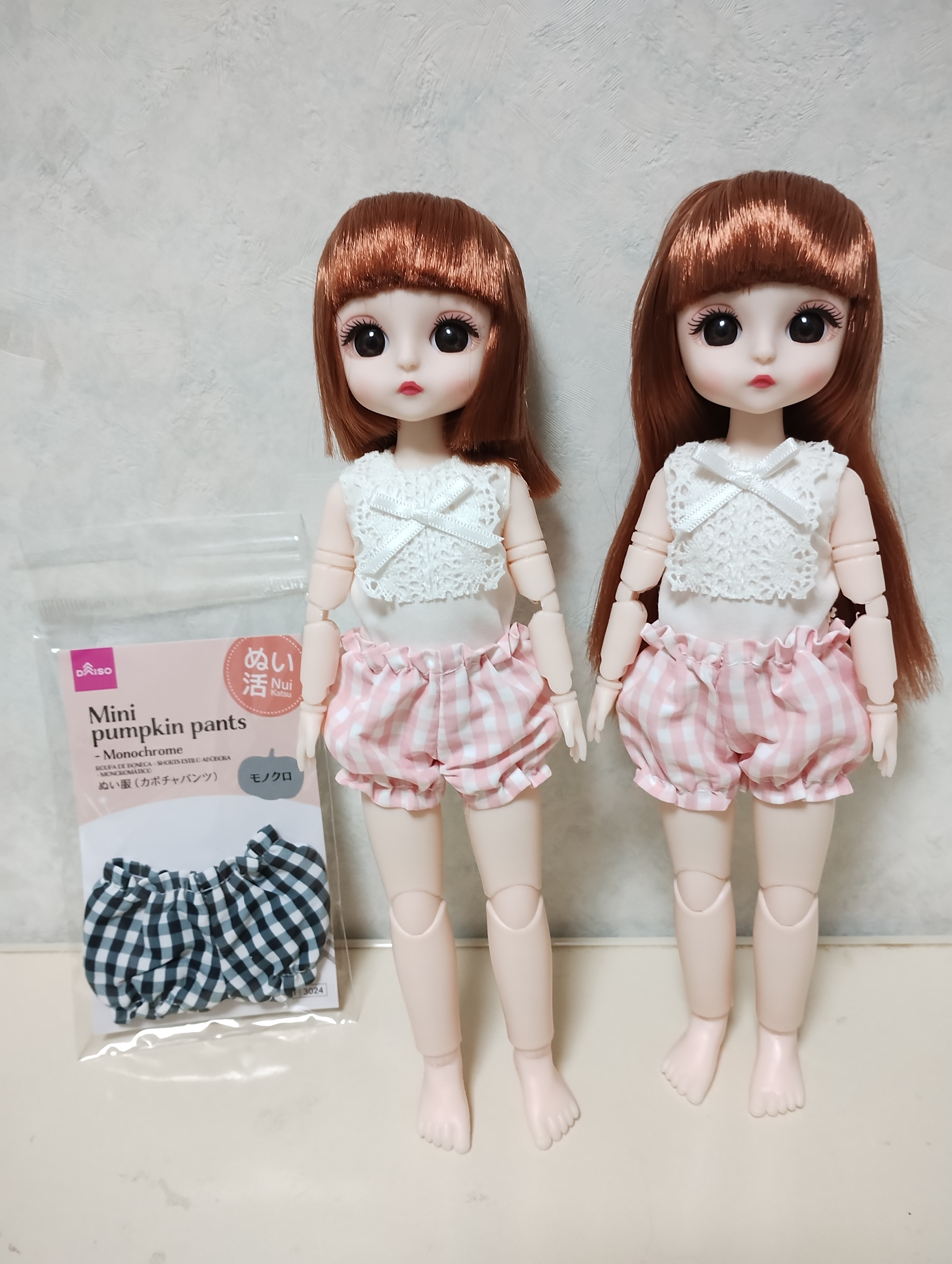 トップ > DAISO > その他 > ぬい服(カボチャパンツ) はらぺこ 2026/03/07 05:47 ぬい服(カボチャパンツ) ドールアイテムも紹介していこうと思います。こちらは、「ぬい活のカボチャパンツ」です。 ゆきちゃん(19cm)にフィットしました。私が購入したのは黒とピンクです。他にも、数種類の色がありましたよ。青や黄色や赤や緑だったかな…記憶がおぼろげです、すみません😅 ドル活 ぬい活 着せ替えゆきちゃん ゆきちゃん ダイソードール おもちゃ アイテム 人形小物 いいね 共有する 共有する X facebook LINE リンクをコピー コメントする 0 件の返信 (新着順)
