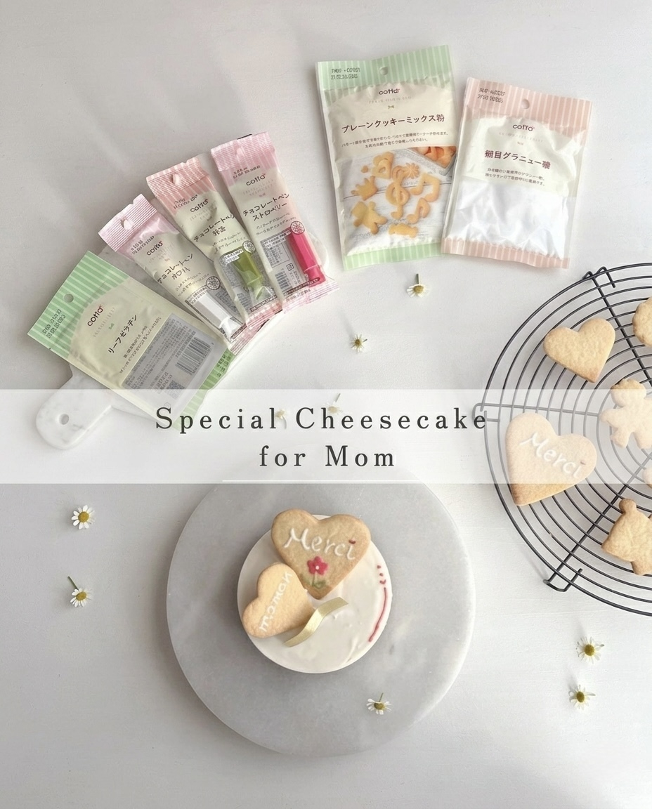 製菓・製パン材料を販売する cotta(@cotta_corecle)さんが監修するダイソー(@daiso_official)さんの商品を使って、「母の日プレゼントのレアチーズケーキ」を作ってみました。