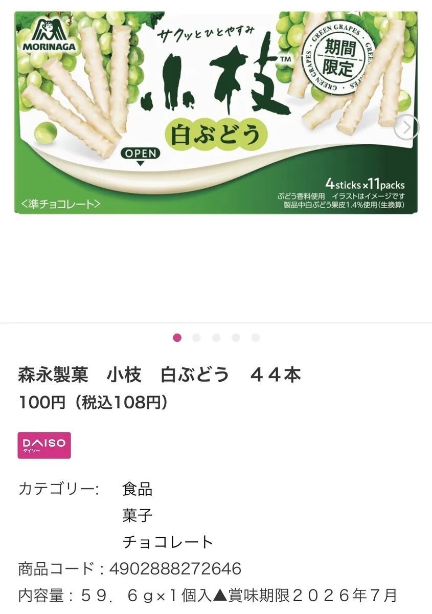 トップ > DAISO > 店舗パトロール > 小枝期間限定を発見! ちほ STAFF 2026/01/15 15:56 小枝期間限定を発見! 小枝の白ぶどう味を発見しました! 美味しそうな味ですね! 期間限定2種類ございます! 気になる方は、是非チェックしてみてください! DAISO 小枝 期間限定 いいね 共有する 共有する X facebook LINE リンクをコピー コメントする 1 件の返信 (新着順) ミュートしたユーザーの投稿です。 投稿を表示 なし STAFF 2026/01/15 17:40 これお買い得なやつですよね 店舗で注文してたのに欠品になって入ってこなくて買えませんでした😢 冬になると何かしら出るチョコレートのお買い得品を買うのを毎年楽しみにしてる人です笑 いいね 返信する ミュートしたユーザーの投稿です。 投稿を表示 ちほ STAFF 2026/01/15 21:15 なし そうです! 辛いやつですね。 私も楽しみにしています笑 いいね 返信する
