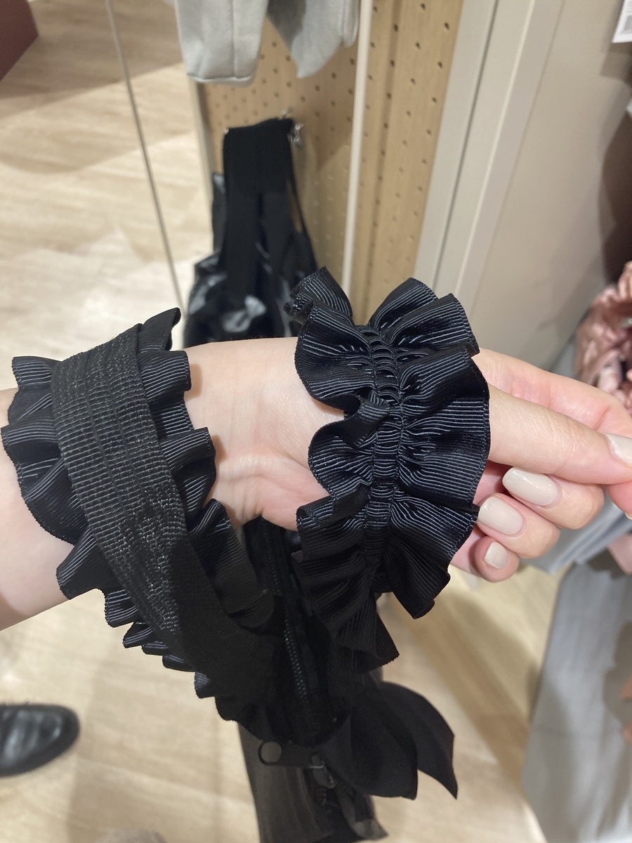 このフリルはただ可愛いだけではなく、腕にかけても痛くならないように作られているそうです。
