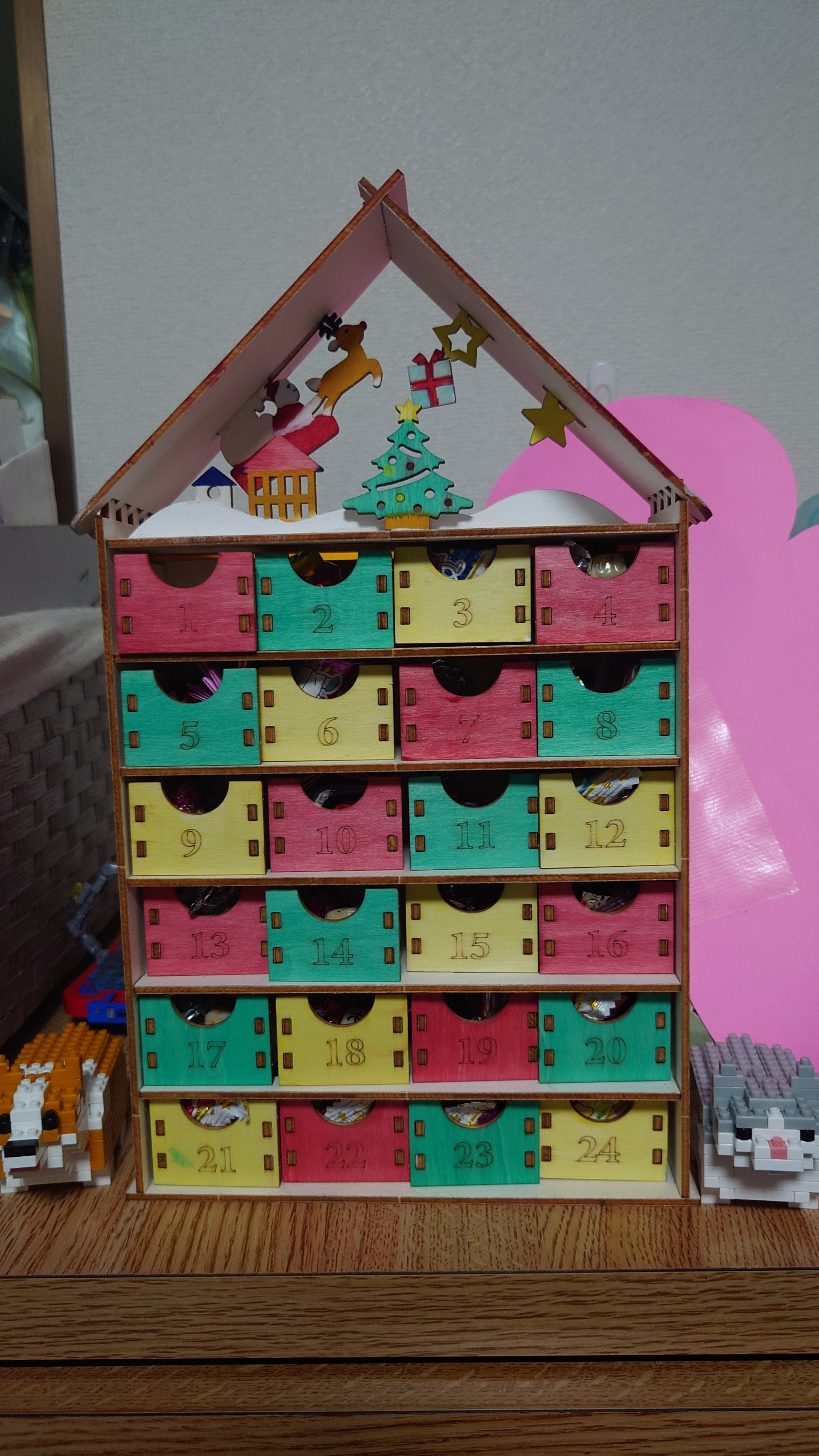 トップ > アレンジ投稿 > ハンドメイド > アドベントカレンダーキット ぱーみー 2025/12/02 19:36 アドベントカレンダーキット 引き出しは小さいけど、なかなかいい出来になりました! 子供2人に。 こんなガチャチケットも一人3枚! 来年から使えますw クリスマス アドベントカレンダー お菓子 いいね 共有する 共有する X facebook LINE リンクをコピー コメントする 3 件の返信 (新着順) ミュートしたユーザーの投稿です。 投稿を表示 どらごん 2025/12/03 08:03 豪華な500円のウッドクラフトキットのやつですね! 売り場で見かけて、24個の小箱をひたすら組み立てる仕様に戦慄しましたw 組み立てお疲れ様です 色も塗られていい感じですね! 屋根裏の雪景(?)もクリスマスっぽくてわくわくします イルミネーション用の電飾ライトで光らせたりしても面白そう 引き出しのスキマから中身がチラ見えしているので、(サイズ的に難しいかもしれませんが)中身の見えないラッピング用小袋とかに詰めたり、スキマを隠すカバー的なものがあると「お楽しみ」感がアップするかも? とか考えました いいね 返信する ミュートしたユーザーの投稿です。 投稿を表示 ぱーみー 2025/12/03 10:08 どらごん そうですねぇ アイデアありがとうございます🔆 いいね 返信する ミュートしたユーザーの投稿です。 投稿を表示 のむくん 2025/12/02 22:33 クリスマスがワクワクしますね! いいね 返信する ミュートしたユーザーの投稿です。 投稿を表示 ぱーみー 2025/12/03 10:06 のむくん ワクワクしてもらえたらうれしいです🥰 いいね 返信する ミュートしたユーザーの投稿です。 投稿を表示 武史先輩俺! 2025/12/02 20:45 とても楽しそうですね😃✨ いいね 返信する ミュートしたユーザーの投稿です。 投稿を表示 ぱーみー 2025/12/02 20:51 武史先輩俺! いいクリスマスにしたいです🥰 いいね 返信する