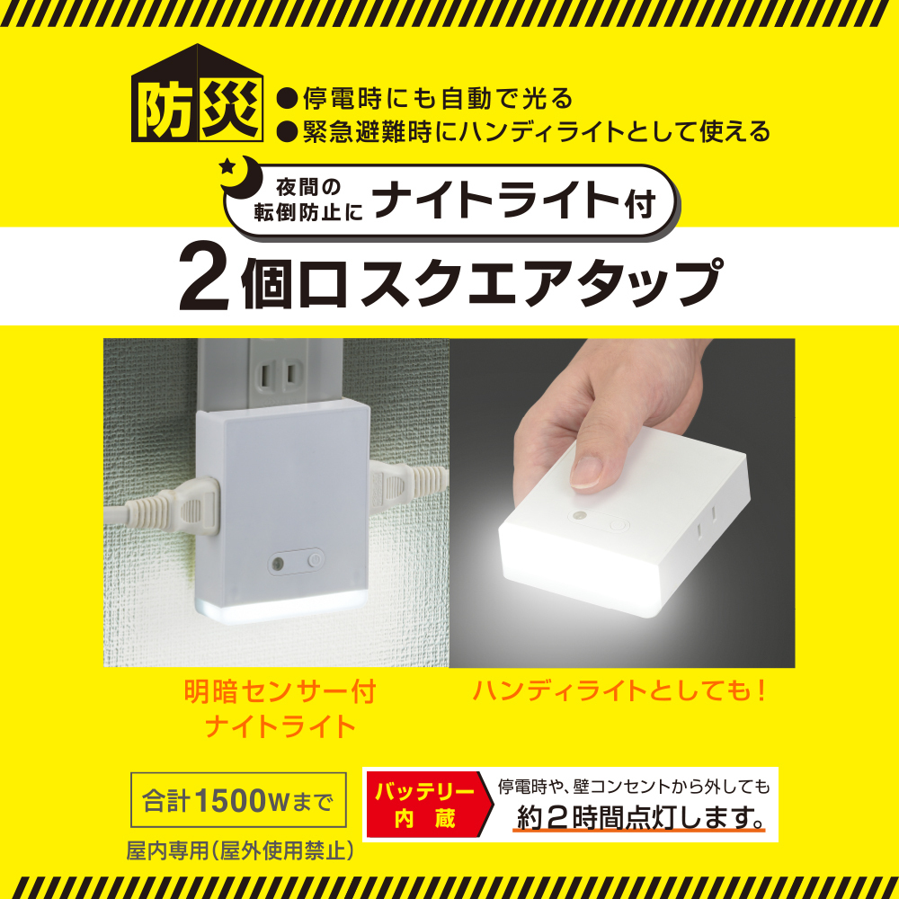 コンセント増やせて、自動点灯ライトになって、懐中電灯にもなって、、