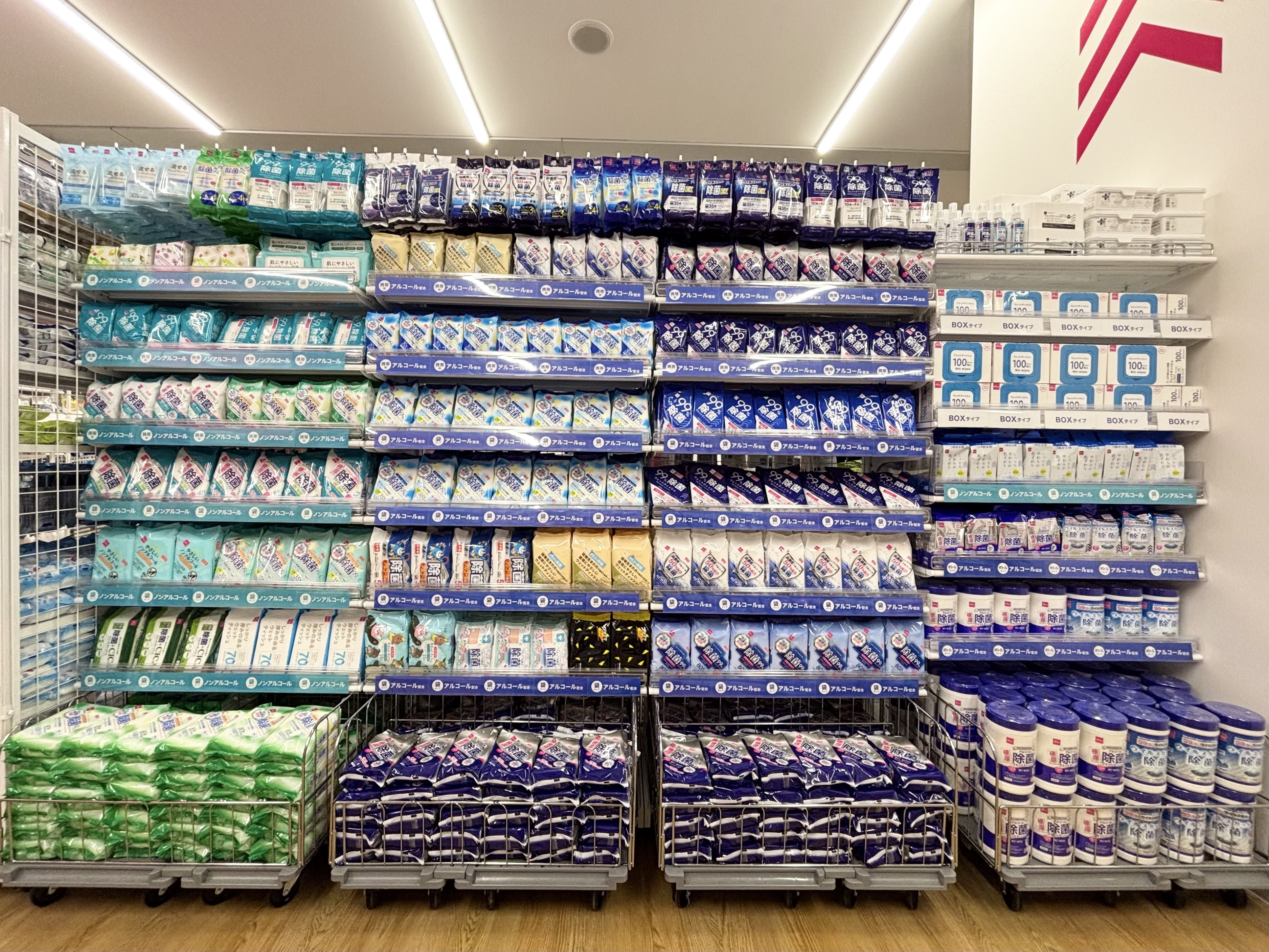 ウェットティッシュは一度に沢山買われるお客様が多いので毎日の商品整理が欠かせません💫