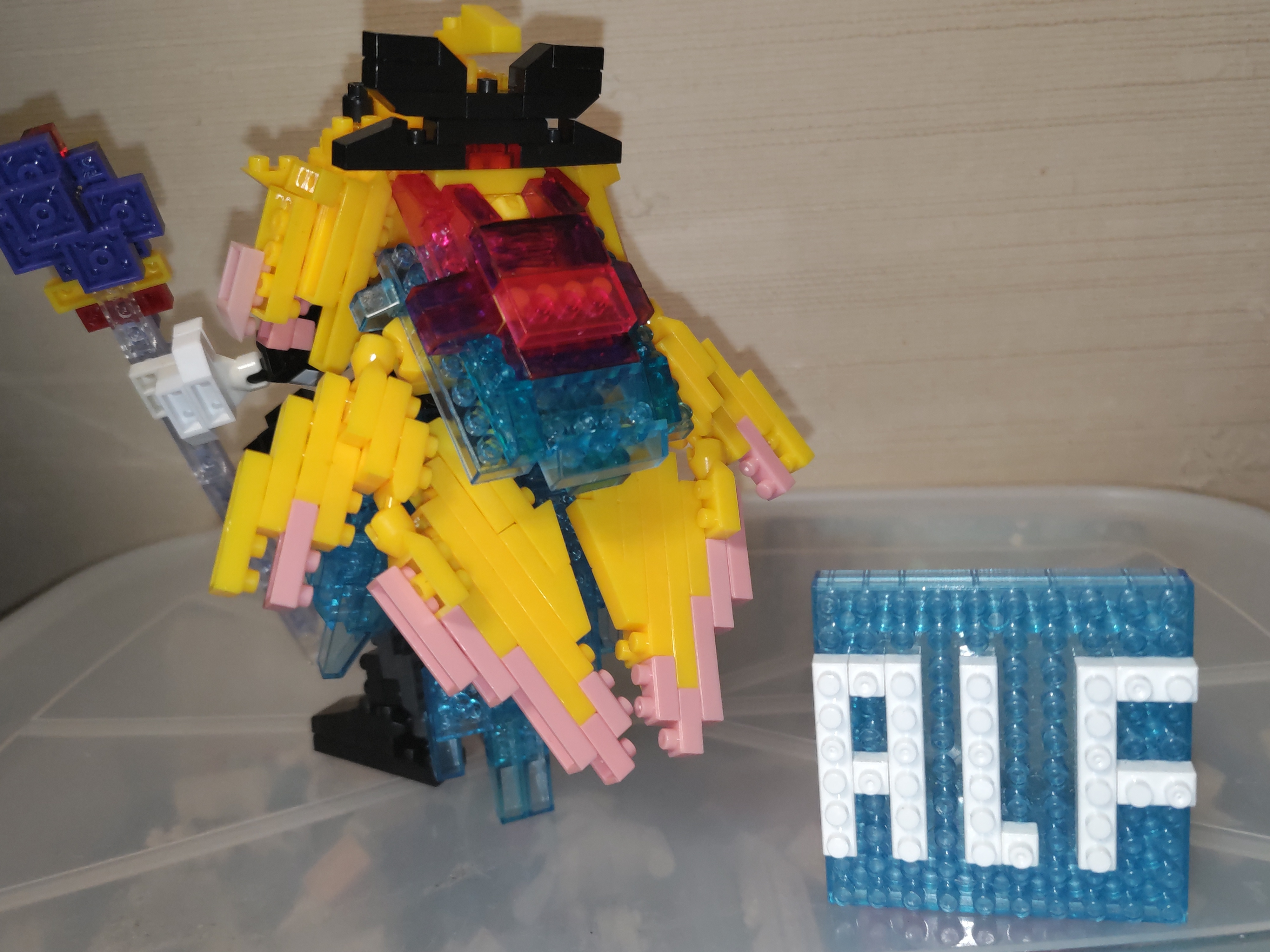 プチブロックの限定された色と形状でモチーフ元の複雑なデザインラインを如何にして記号として落とし込むかの取捨選択が難しかったです(´Д`)