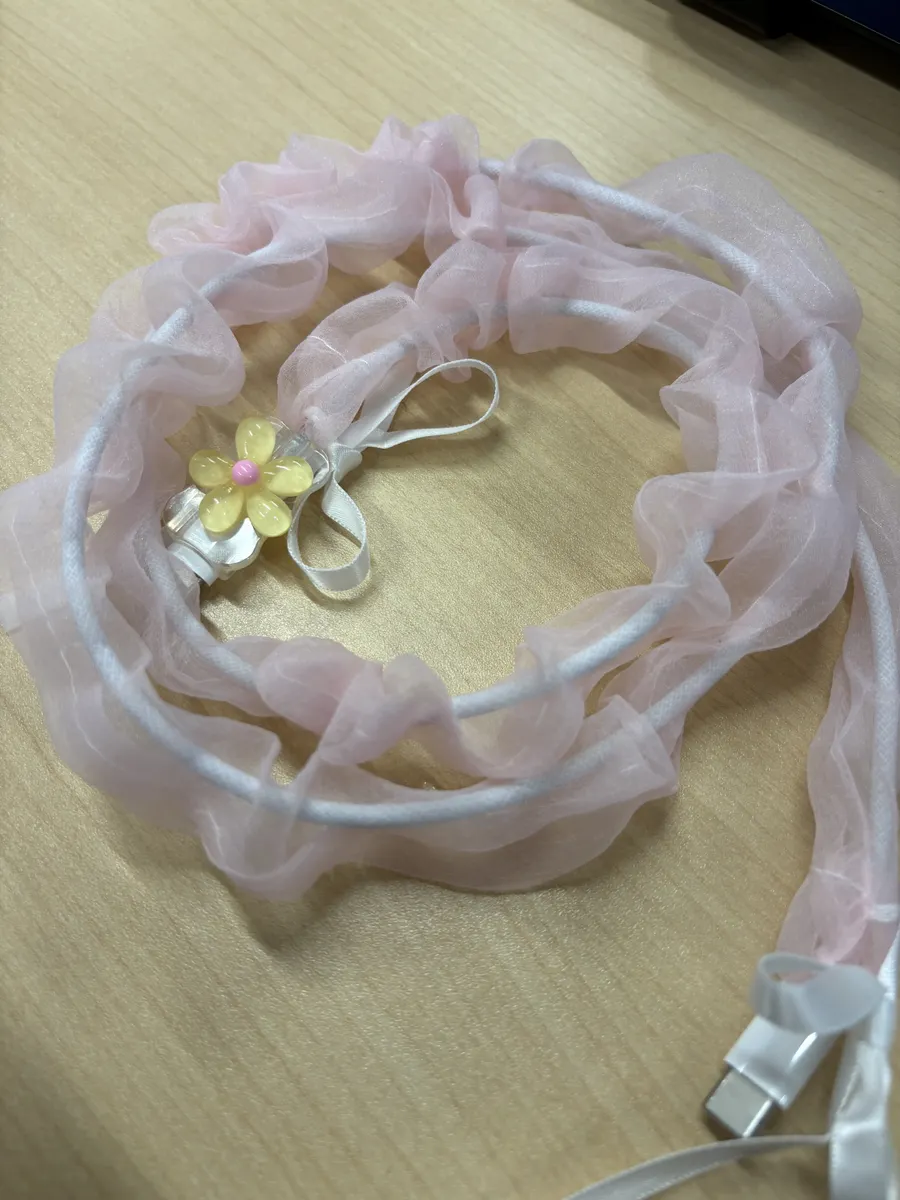 お部屋をコーディネートしても、充電ケーブルが世界感を崩す。。といったお悩みにぴったりの商品です👏オーガンジー素材でとてもかわいい❤使い方は簡単!カバーの中にケーブルを通して、両端を付属のリボンで結んで固定するだけです💡