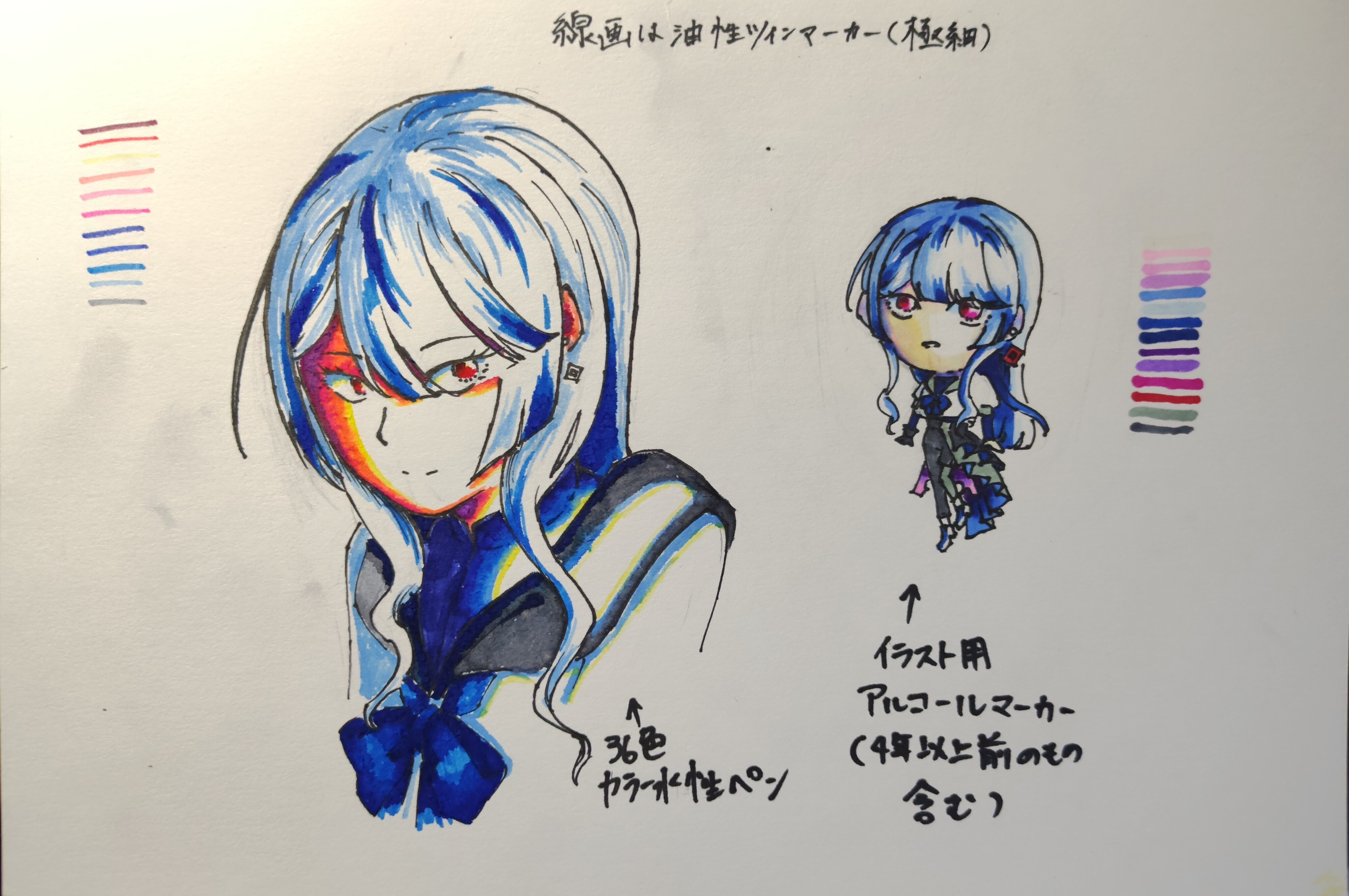 右の絵に関しては一応横に使用したペンの色を塗っておきましたが、4年も前なのでもう無い色もあるかと思います。ご了承ください。