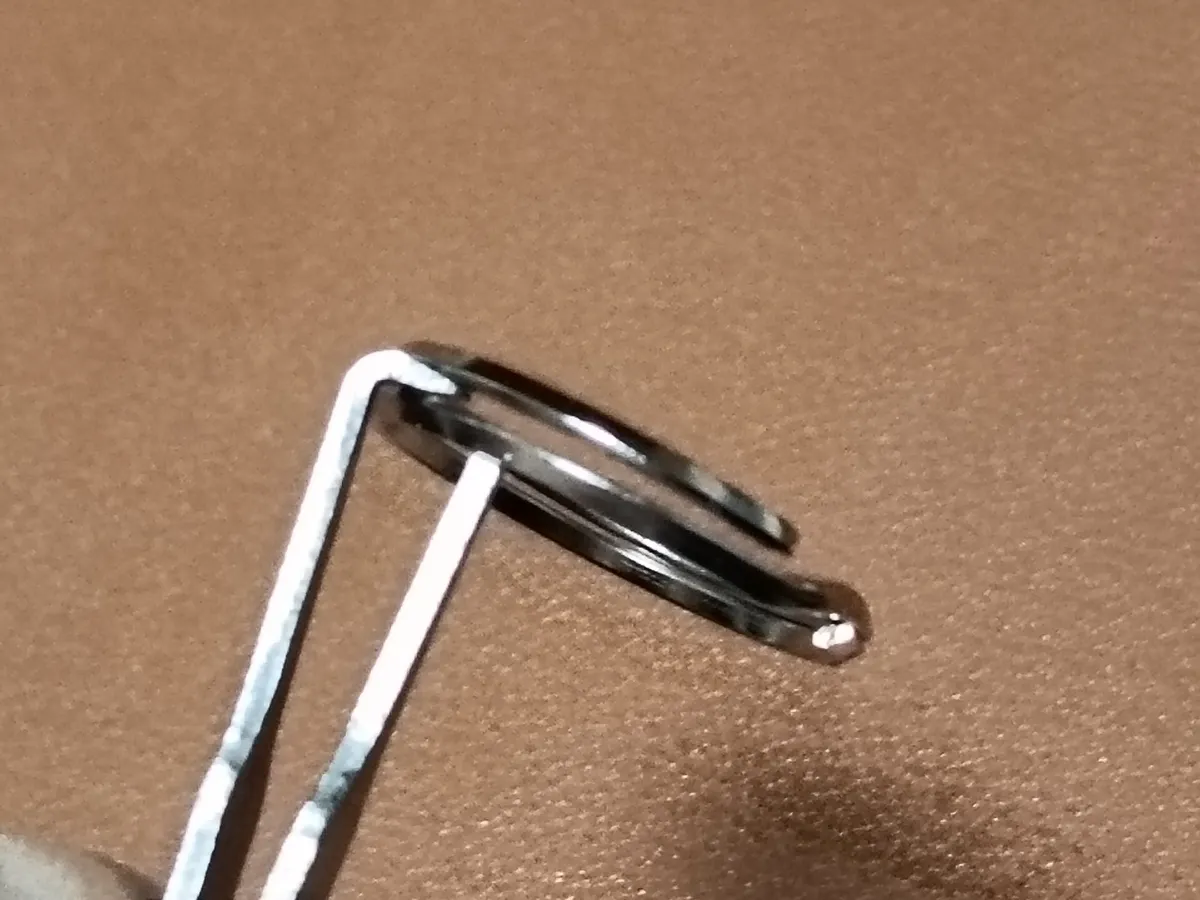 一般的なキーホルダー用リングも同様に簡単に開きます。始まり部分に差し込むのがコツです。