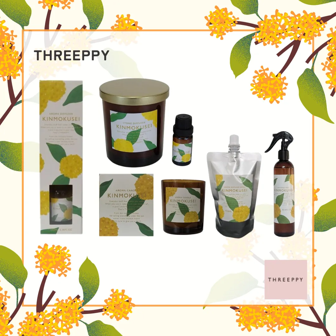最後はTHREEPPYからのご紹介です。THREEPPYの金木犀シリーズはお揃いのパッケージが可愛らしいですね!ぜひお揃いで秋気分を楽しんでください♪