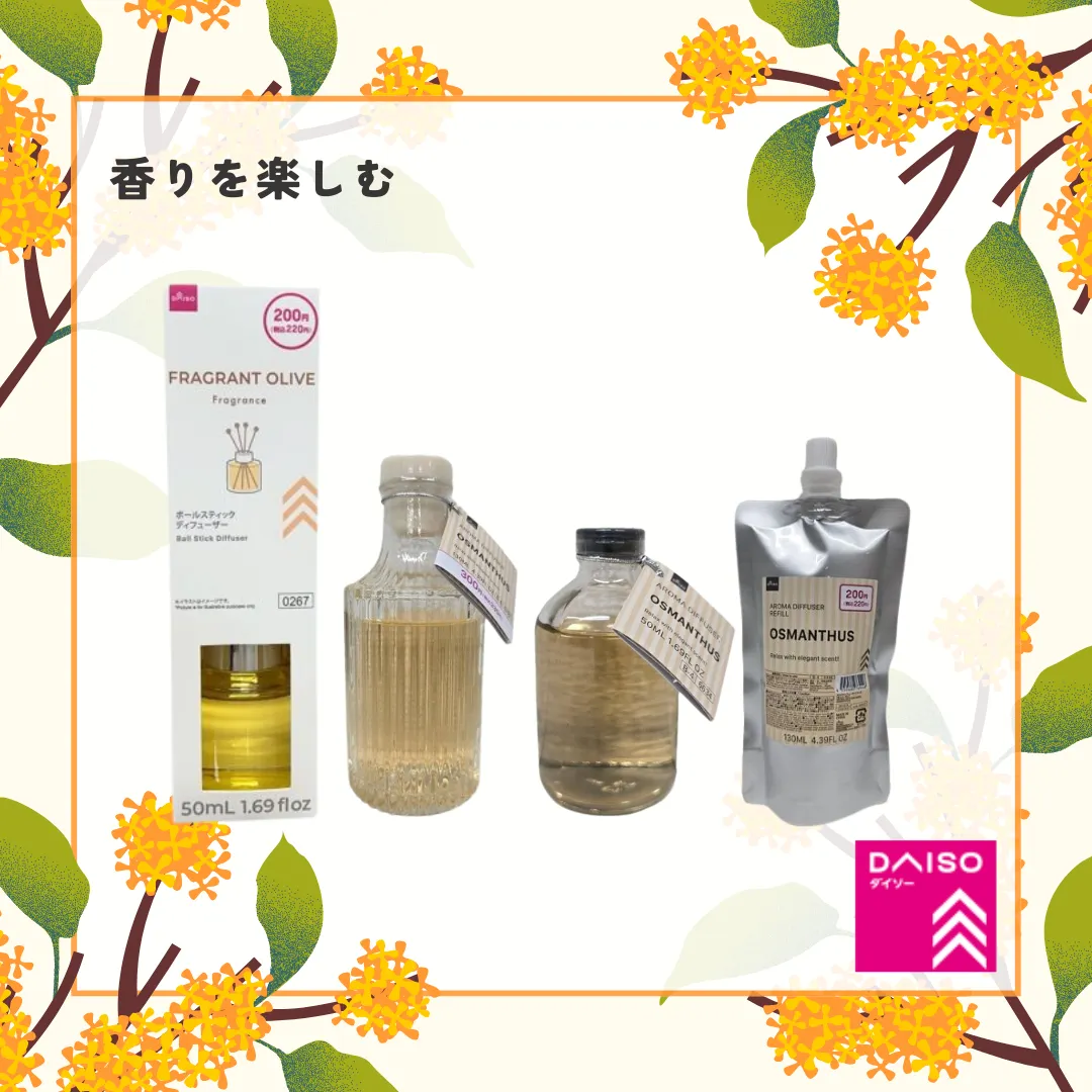まずはDAISOからのご紹介です!香りアイテムはもちろん、季節の文房具があるのもDAISOならでは。