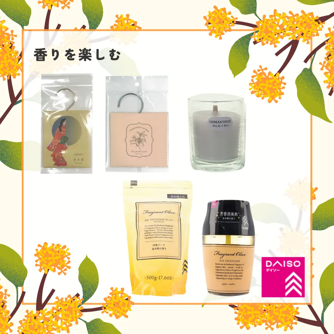 スタプロで人気の木芯キャンドル、実はDAISOでも販売しているんです👀!お役立ちな芳香消臭剤にも金木犀の香りがラインナップされています✨