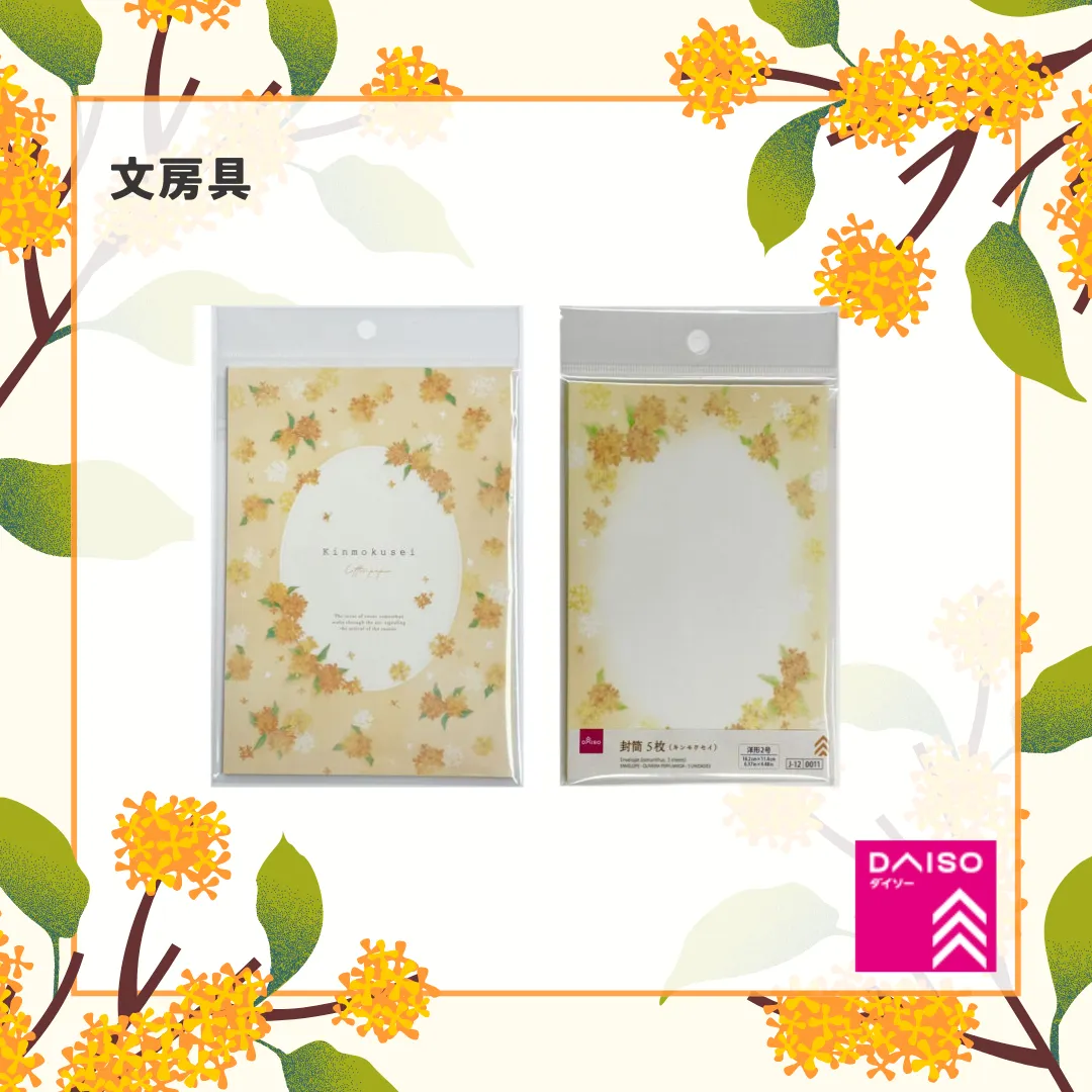 季節の文房具はDAISOパトロールの楽しみですね☺️秋のお便りに、お揃いの便箋と封筒はいかがでしょうか。