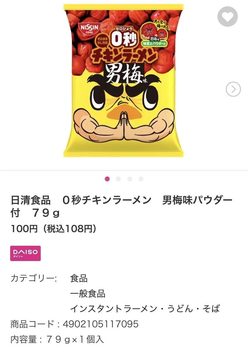 トップ > DAISO > 食品 > 新商品! ちほ STAFF 2026/01/26 19:19 新商品! 0秒チキンラーメンから男梅味が出ました! 男梅味パウダーをかけて、是非!! 気になる方は、是非チェックしてみてください! 食品 0秒チキンラーメン いいね 共有する 共有する X facebook LINE リンクをコピー コメントする 1 件の返信 (新着順) ミュートしたユーザーの投稿です。 投稿を表示 100均チャンネル編集部員 2026/01/27 22:24 これかなり気になります😳梅もチキラーも好きなので絶対買いに行きます〜‼️ いいね 返信する ミュートしたユーザーの投稿です。 投稿を表示 ちほ STAFF 2026/01/28 12:30 100均チャンネル編集部員 是非! いいね 返信する