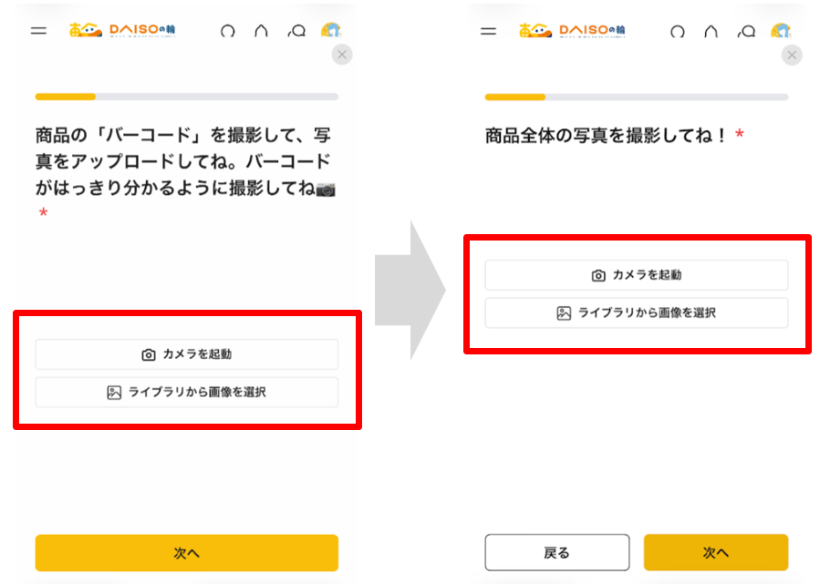 1. 商品のバーコードを読み取る!ライブラリからも選択できます。