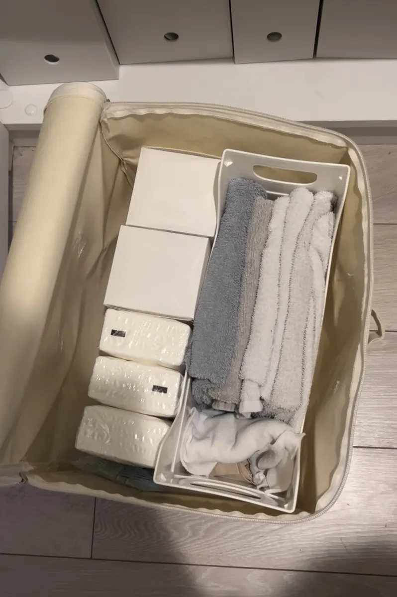 ティッシュや雑巾など軽いものを収納しています。