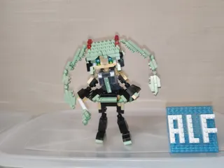 生誕祭 昨日が生誕記念日だったという事でダイソーさんのプチブロックで初音ミクを作ってみました。T-rowさんの染色ブロックを使用しています。各部可動でポージングが出来ます。お座りもOkサイズは、最新版規格のいなづまさんと同じくらいです。共通規格なので頭部交換も出来ます。というわけで、プチブロックの初音ミクさ