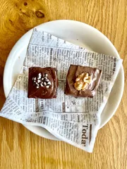 今年もブラウニーを大量に作り友達にプレゼント🎁しました〜😊材料はこちら今回は明治のミルクチョコ🍫のほかにブラックチョコ🍫の2種類に挑戦😌区別がつくようにcotta のオシャレなチョコチップをのせてみました〜🙂いつもはオーブンの天板で作るのですが、コミュニティーサイトで紹介されていたガトー