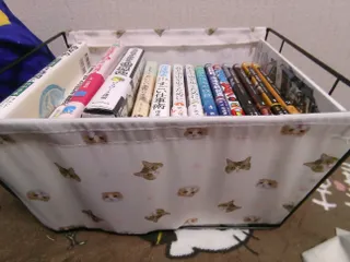 DAISOにて。「収納グッズ無いかな〜(。●。)」と思いながら探していたら、この猫のワイヤーバスケットが目に映り、気づいたらカゴの中にin!!...そのまま買ってました。本とか入れてます。たまにぬいたちも同居。 調べて見るとこの猫、ギネスに認定されてるようです!すごいですね✨️