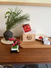 節分ディスプレイに仲間入り 1月キャンペーン商品でいただいたプチブロック梅は息子がつくりました!節分ディスプレイしました✨半紙と節分豆もDAISO商品です☺️