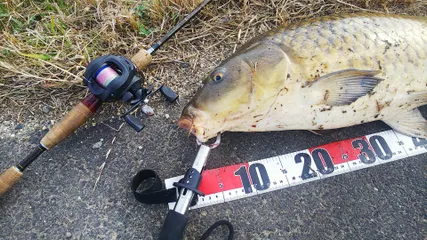2025年度の釣り納めはダイソーベイトリールとダイソークローワームでのコイのルアーフィッシングで締めたよ!🐟