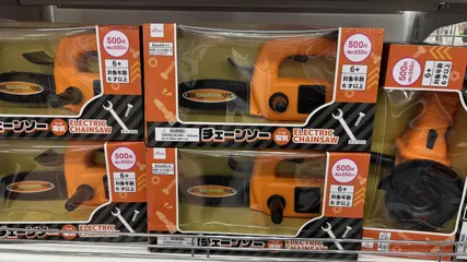 こちらはチェーンソーのおもちゃ!!DIYごっこができますね!お子さんにオススメです。ドリルやグラインダーもあります!