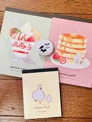 大きい方のメモ帳はあとプリンアラモードとフルーツタルトだったかな? 4種類ありました! 全種類買うか迷いましたがなんとか減らして来たところです😂