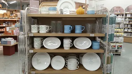 THREEPPYの食器売場では、季節感のある新商品や店舗ごとに工夫されたディスプレイを見るのが楽しみです🐨♪横浜市のダイソー横浜サニーアイル店で見つけた可愛い売り場をご紹介します🍁☃秋の食卓がイメージされたこちらのディスプレイが最初に目を引きました!立てかけたトレイを使ったアイテムの魅せ方や、一緒に