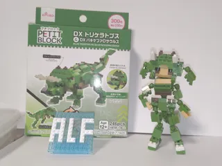 DXトリケラトプスをアレンジ ダイソーさんのプチブロック。DXトリケラトプスをから任意のブロックを使ってアレンジビルド。トリケラちゃんを作ってみました。可愛く出来ました。各部関節や、尻尾が動きます。四足歩行(ハイハイ)もーど。という訳でトリケラアレンジでした。今回のDX恐竜シリーズは、1セットでのアレンジもしやすいですし、プチブ