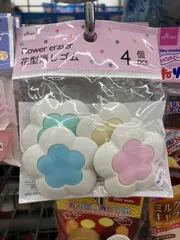 消しゴムといえば四角いいめーじ。 花形のけしごむをみつけました。かわいい。果たして、ちゃんと字を消せるのか気になるところ。可愛くてよく消える消しゴムなら最高ですね。