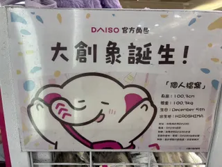 台湾にいる友人から「だいぞういたよ!」とメッセージをもらいました✉️「大創象」と書くんですね!「官方角色」=公式キャラクター なのだそうです。タイにできた新店には民族衣装を着ただいぞうの像もおり、海外でも活躍する姿が頼もしいです✨️いろんな国で愛されるようになるといいな~🐘♪