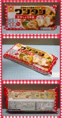即席のワンタンスープです。赤いきつねと緑のたぬきでおなじみ、東洋水産さんのマルちゃんブランド。乾燥ワンタン+粉スープで、これ1パックで2~3人分に。ワンタンは小さめのものが15~16個くらい。分けてもよし、もちろん一人で全部食べてもよし!(笑)お好みで具を足したり、ラーメンを入れてワンタンメンにして