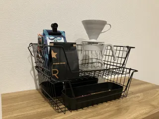 商品説明ダイソーの330円商品。スチール製の細いフレームで構成されたワイヤーバスケットです。• スタッキング: 持ち手を内側に倒すことで、同じ製品を上に積み重ねて固定できます。• 通気性: 底面まで網目状のため埃が溜まりにくく、湿気がこもらない。• 視認性: 中身が外から判別しやすい。