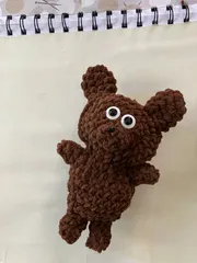 ダイソーの編み図であみぐるみ編んでみた ドールズヤーンブラウンのラベルにあみぐるみが載っていてダイソーで公式の無料編み図を発見!時間が出来たので、くまさんあんでみることにしました。 はじめまして。自称ダイソーのくまです😄表情はわたしなりにあれんじしました。白目はワンタッチホックです。 背中痒い😣背中かいて(⊙c_⊙)&