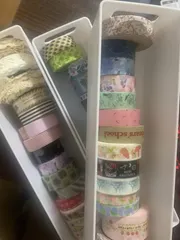 SIKIRIシリーズのケースが大好きなのですが、ああいった透明のケースでマステをたくさん収納できるケースが欲しいです。深型が出たのは知っているのですが欲しいマステ幅にはまだ届かなく…あったとしても何本か縦の仕切りがあったりしてマステがうまく綺麗に収まらなかったり。(変な余白ができてしまう) マステの