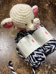 NEW 廃盤の毛糸みーつけた☺️ いつもと違う店舗にパトロール。今はう廃番になったしょうひんをたまに見つかる店舗があるんです。やはりみつけた。廃盤の毛糸ツインドロップス ウェスタンネイビー。 かぎ針10mmでざくざくあめるよ。太めの白と紺の2本でいっぽんの毛糸この毛糸、以前パトロール行ったら赤と白バージョンもありました。何