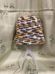 段染めアクリルヤーンでニット帽完成 今年中に完成したニット帽。かわいい柄になりましたよ。よこからみると上からみると。 かぎ針で円から始まる編み方。サイズ調整がむずかしかった。