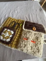 NEW かぎ針収納、編みました かぎ針ケースを編みました✨合うボタンがなかったので代わりにカセットのピンバッチにしています。使った毛糸はDAISOさんのウール100%毛糸並太で編みました🧶好きなカラーの組み合わせなので、気分が上がります。