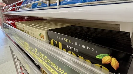 お菓子作りに大活躍 お菓子作りに大活躍のチョコレート!棚の奥まで大量のチョコレートが連なっていました。一つの棚に何枚の板チョコが鎮座しているのだろうか、、、